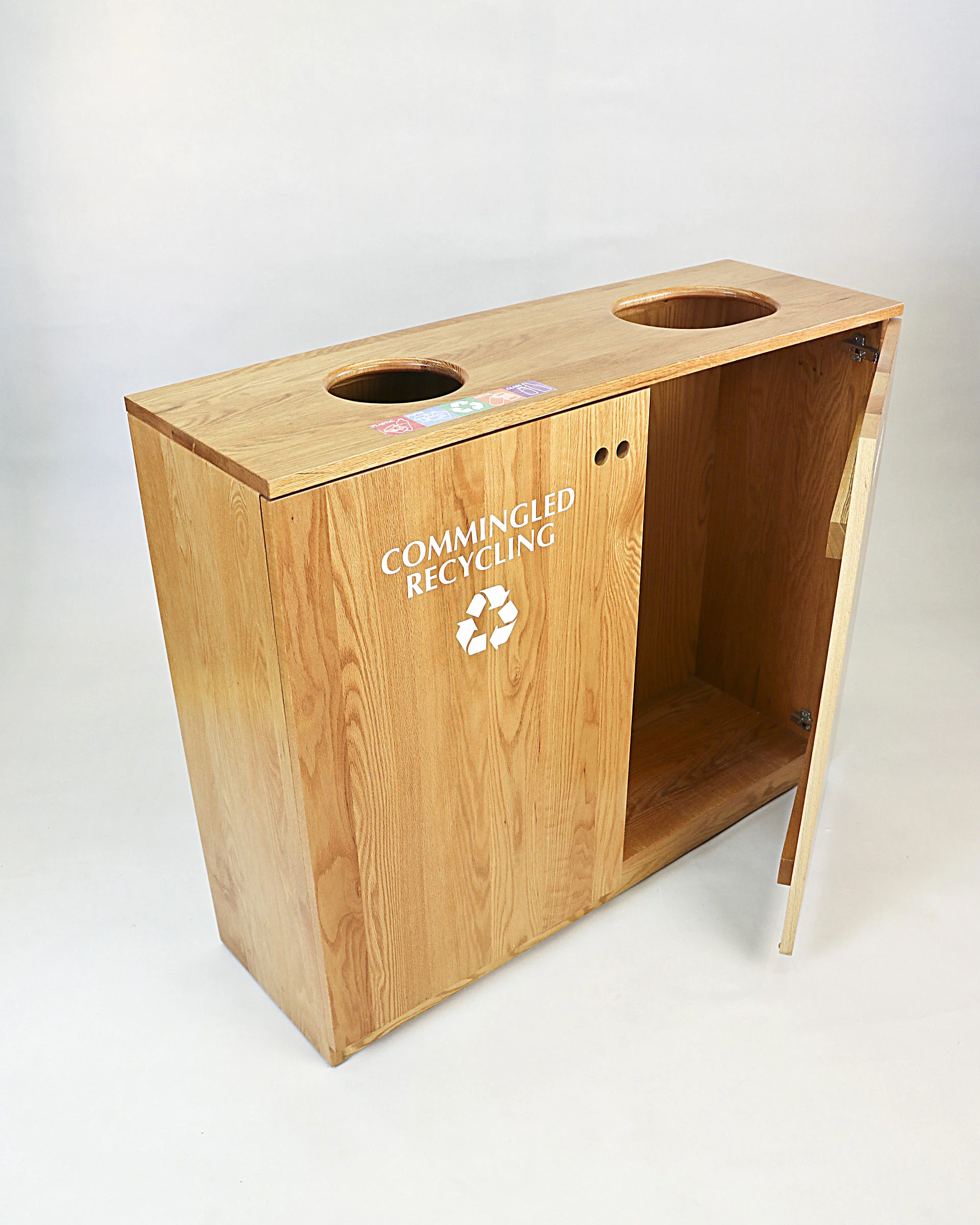 Trash bins aren't typically built with aesthetics at the forefront. Our Double Bin was created to allow for easy disposal of recycling and waste in a manner that adds to the space rather than detracts.